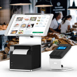 - The combination of tablet stand and printer holders tidys your workplace. Perfect addition for all POS application.