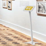 This kiosk floor stand is designed to be very attractive. Slim, delicate, space saving, but heavy duty at the same time, suitable for most situations. It's made of industry grade steel, the thickness of the bottom panel is high to 10mm, very durable and steady. The height is 39 inches and supports ADA compliance.